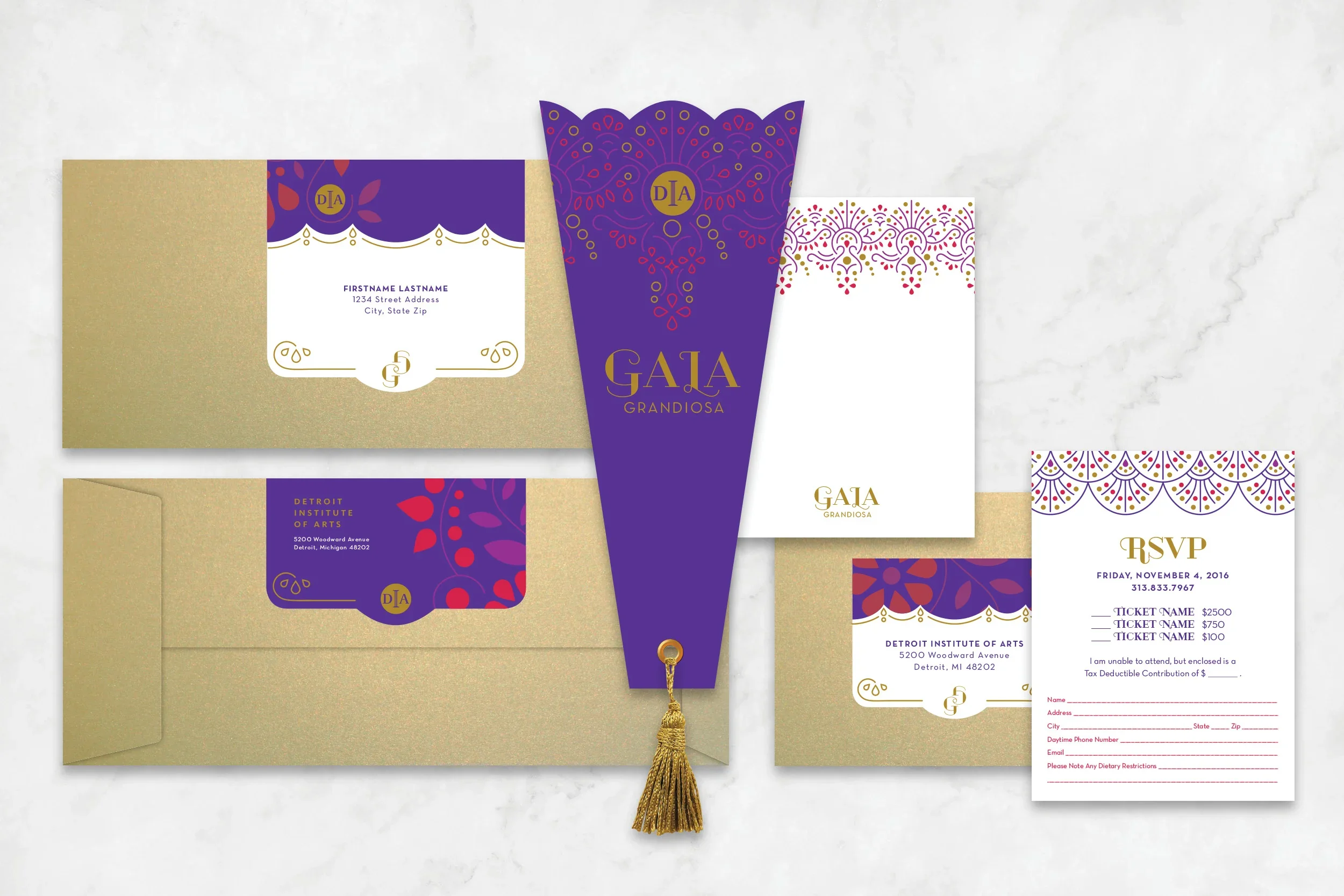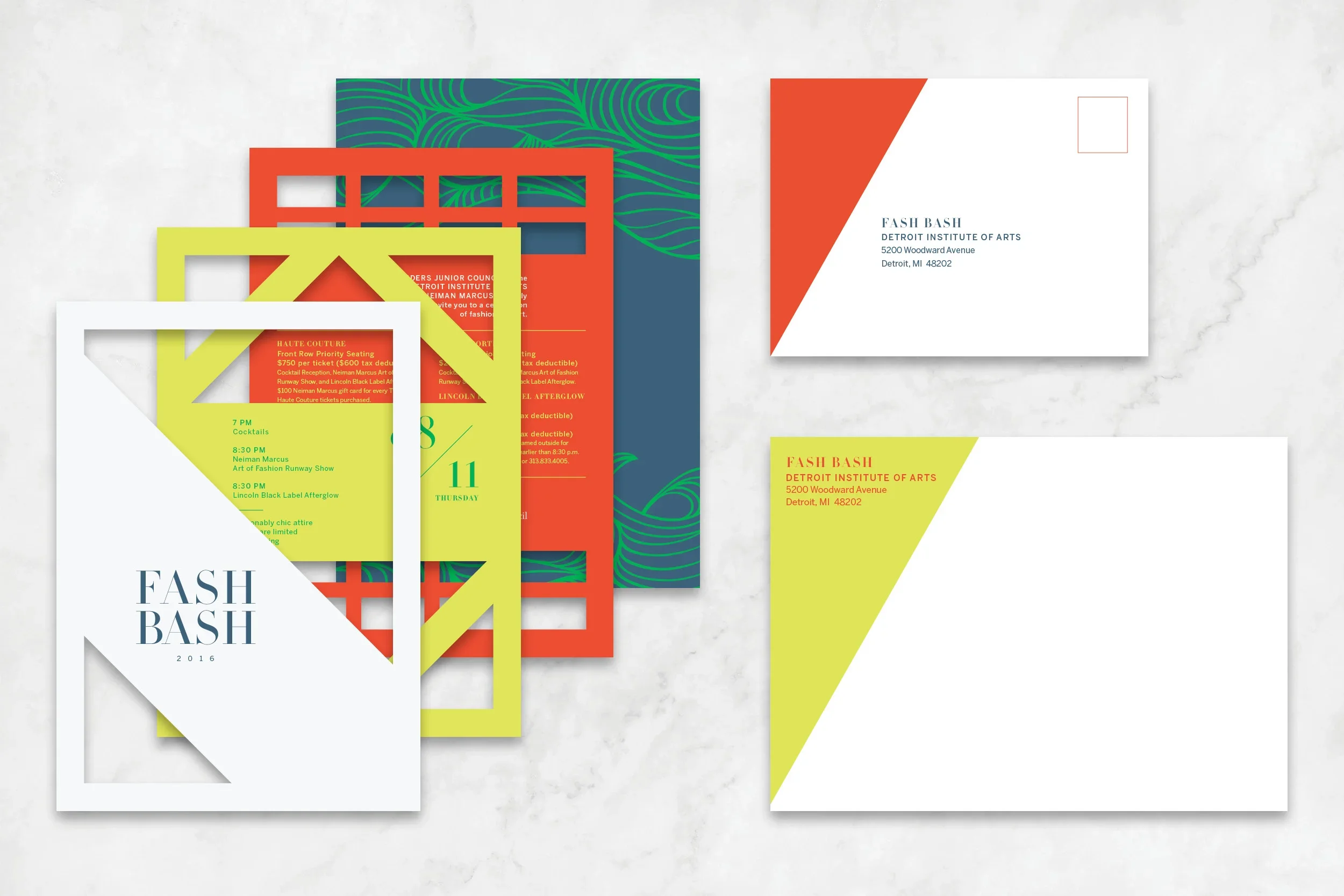 Designed event concepts and materials for the Detroit Institute of Arts, including invitations and collateral for signature events such as Fash Bash and the annual Gala. Invitation design has always been a creative outlet for me both professionally and personally.
